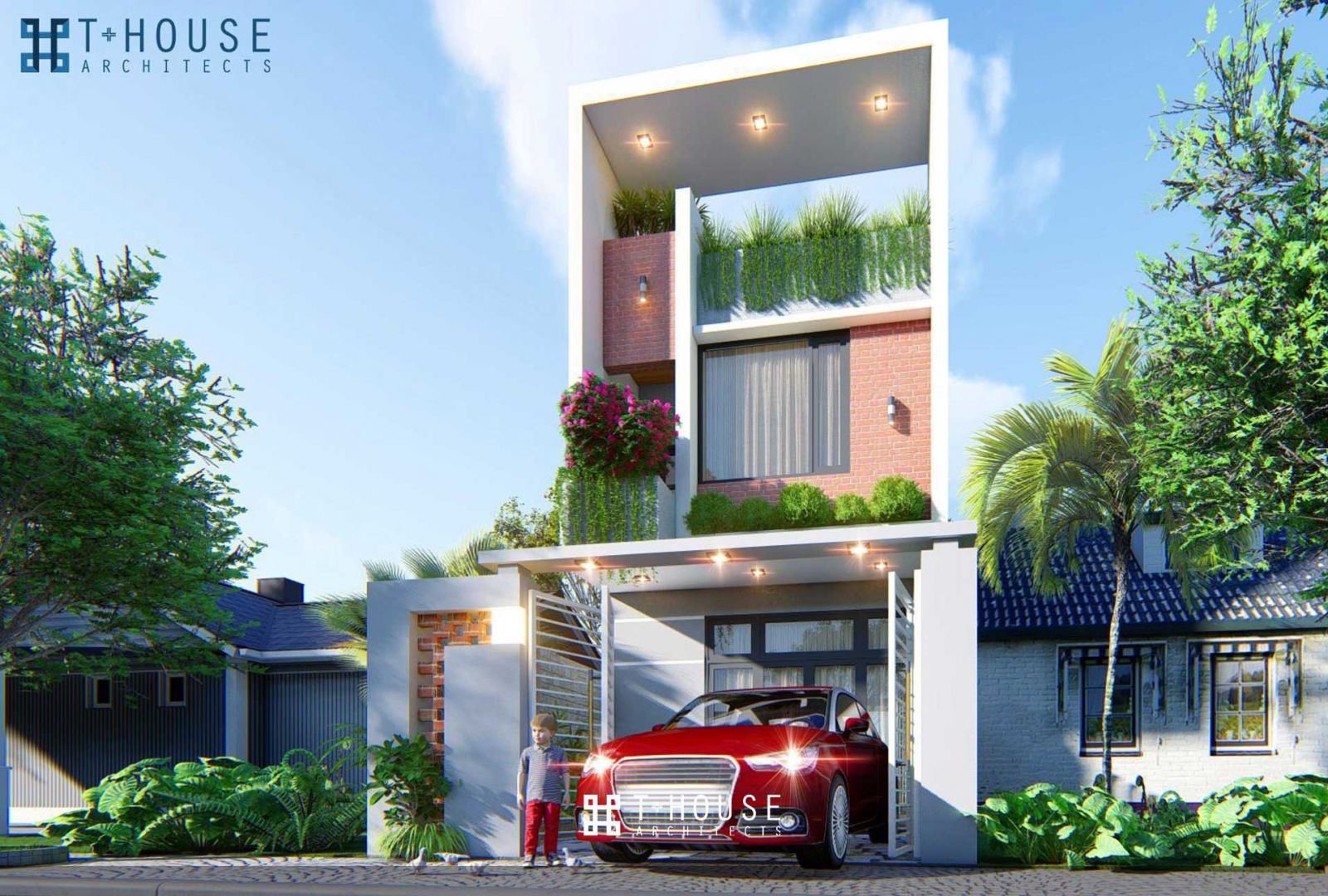 5. Tận dụng tối đa ánh sáng trời, gió trời cho các phòng ngủ, bếp bằng các giải pháp ô giếng trời. Cầu thang, hành lang, nhà vệ sinh có thể kém sáng, kém thoáng hơn một chút nếu không có điều kiện đất đai (ví dụ giáp nhà hàng xóm).